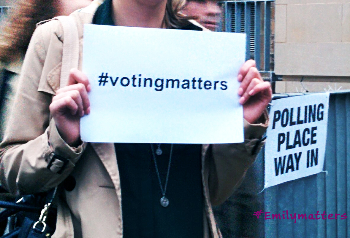 Building on the success of the #Emilymatters House of Commons event and May elections 2014 social media campaign what you tell us will form part of an ongoing #votingmatters digital archive to inspire and motivate young women to vote in the future.