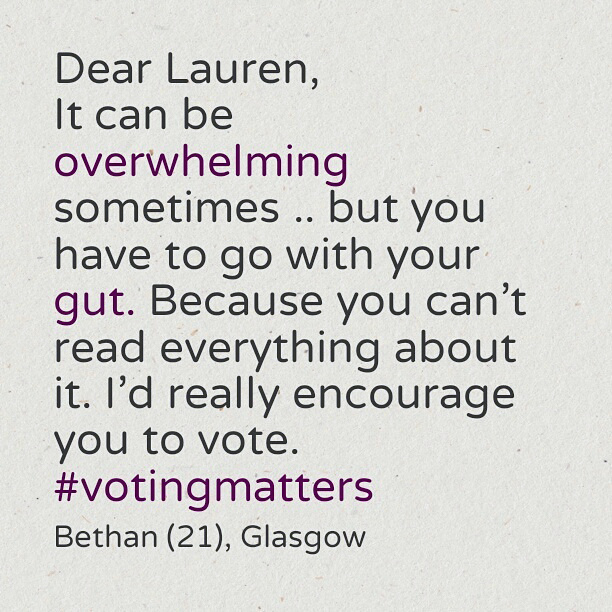 It’s only 6 months to the UK general election. Despite its best efforts Westminster fails to engage the majority of first time voters, especially young women. In 2010 only 39% of women aged 18 to 24 voted. There are some fantastic initiatives out there and #votingmatters is part of that rich tapestry.