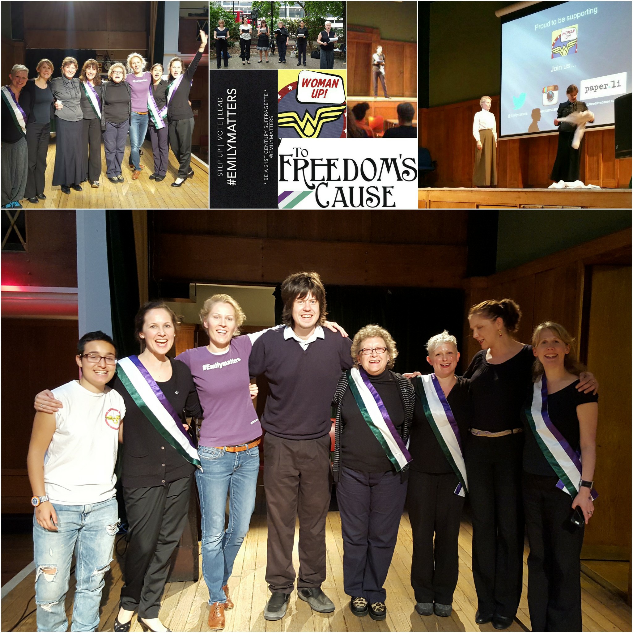 The #Emilymatters performance at Woman Up! drew on my Emily Davison play, To Freedom’s Cause, as well as the #DearLauren voting matters campaign.